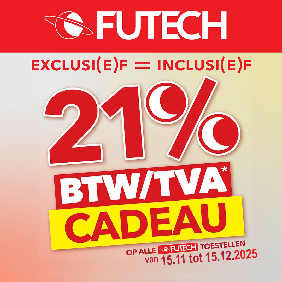21% BTW cadeau actie op het hele Futech assortiment! Ideaal voor professionals en bedrijven