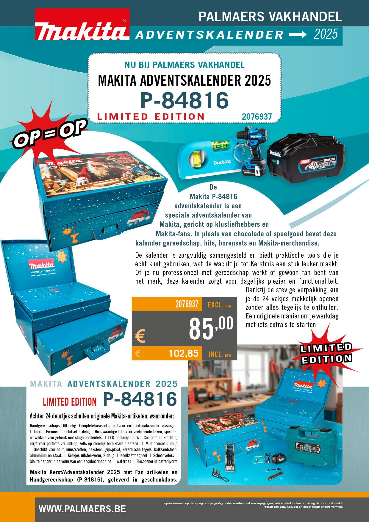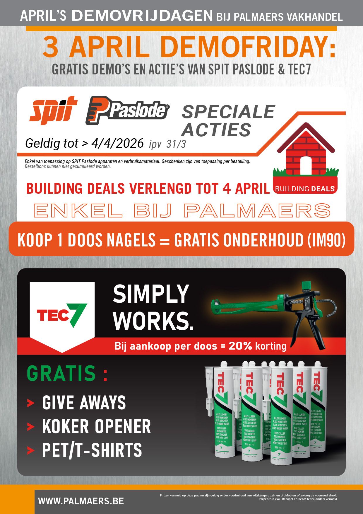 Voor merk specifieke promoties op gereedschap en machines neemt u best even een kijkje in onze actiefolders. Ook daar vindt u verschillende tijdelijke aanbiedingen en kortingen, maar wees gewaarschuwd: op = op dus snel zijn is de boodschap!